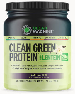 The vegetable protein powder "Clean Green Protein" contains various super foods such as kale, spinach, spinulina, clorella and moringa, including lentin, a type of algae, and aims to improve overall health as well as muscle production.